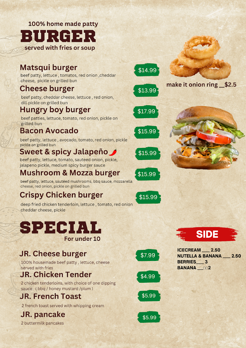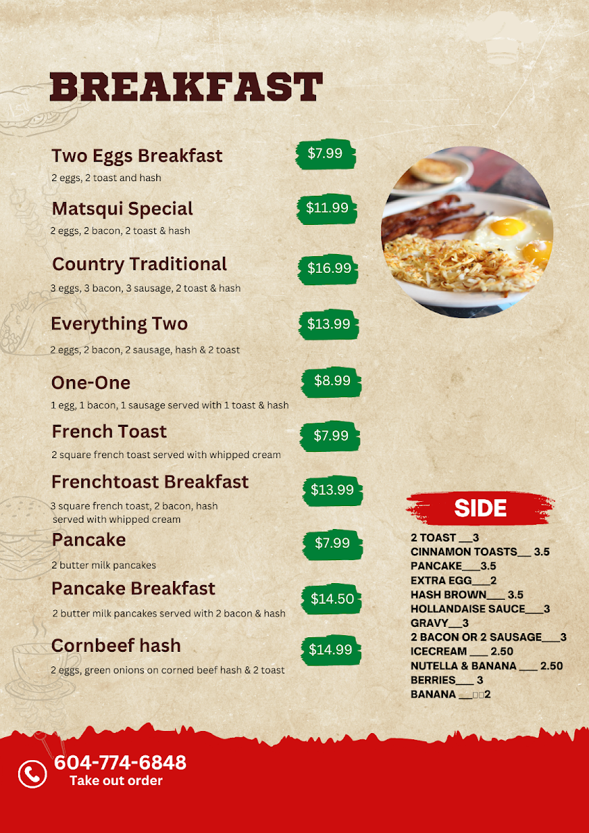 Welcome to Matsqui Cafe, a charming eatery nestled in the heart of Abbotsford, BC. Renowned for its delightful breakfast offerings, this cozy spot embraces a country cafe vibe, capturing the essence of a homey retreat.